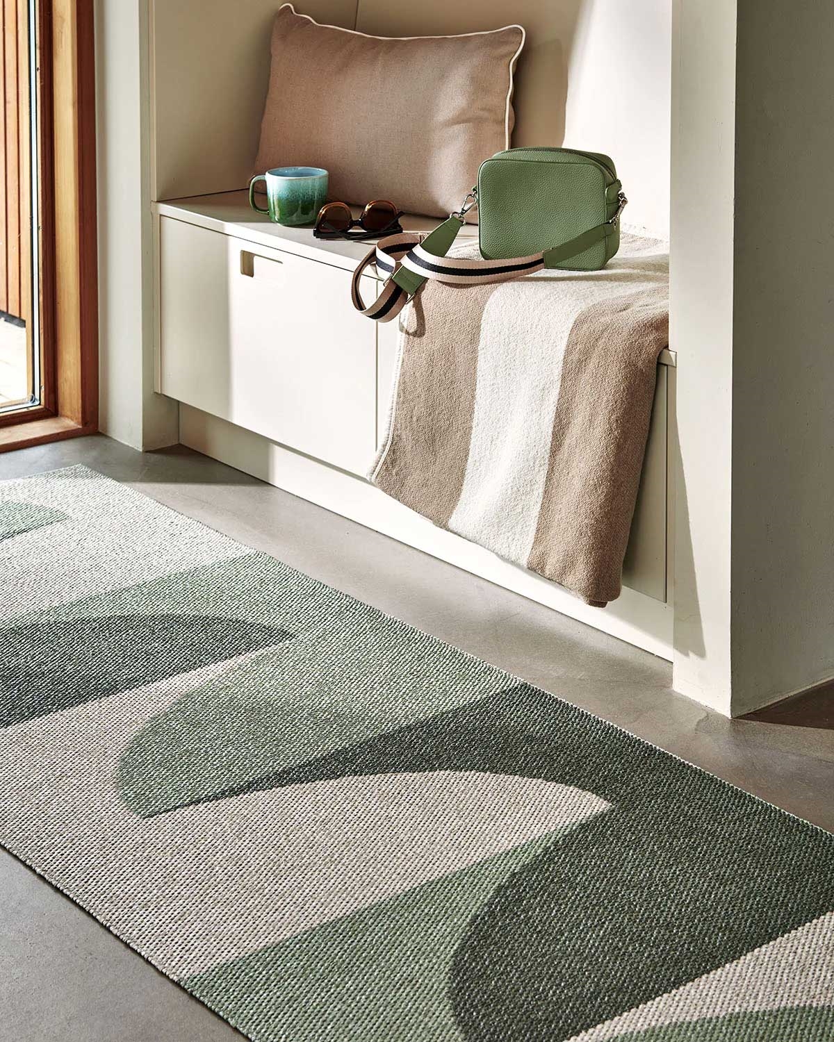 Pappelina leverer tæpper med både stil og funktionalitet. Deres produkter er fremstillet med fokus på holdbarhed, så du får et tæppe, der bevarer sit udseende over tid. Farvekombinationen Hill Army/Misty Mint/Fossil Grey giver en afdæmpet æstetik, der komplementerer både moderne og klassiske indretninger uden at dominere rummet.