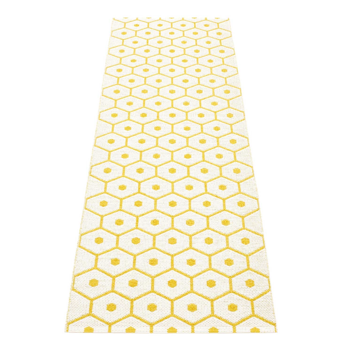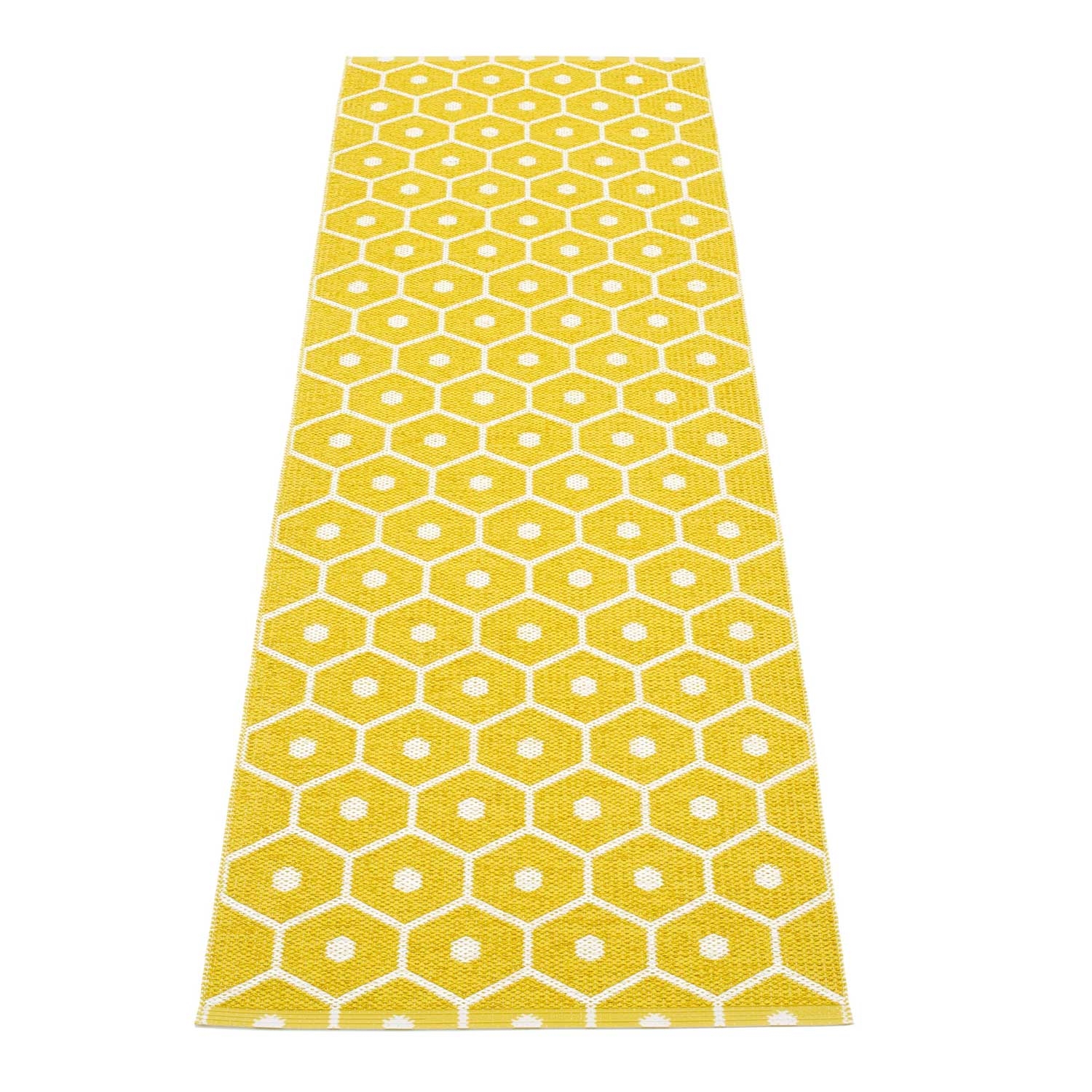 Dette tæppe i HONEY Mustard kombinerer moderne design med funktionalitet. Med sine mål på 70x450 cm dækker det større områder i både stuen, gangen eller udendørs på terrassen. Det er fremstillet af holdbare materialer, der sikrer lang levetid.