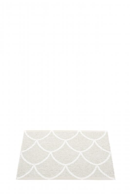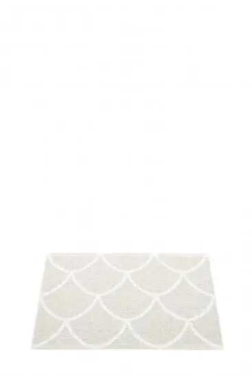 Dette tæppe måler 70 x 50 cm og passer fint foran døre, ved sengen eller i mindre rum. Det skællignende mønster er holdt i lys grå med hvide detaljer, hvilket gør det nemt at integrere i forskellige indretningsstile uden at dominere rummet.