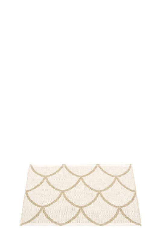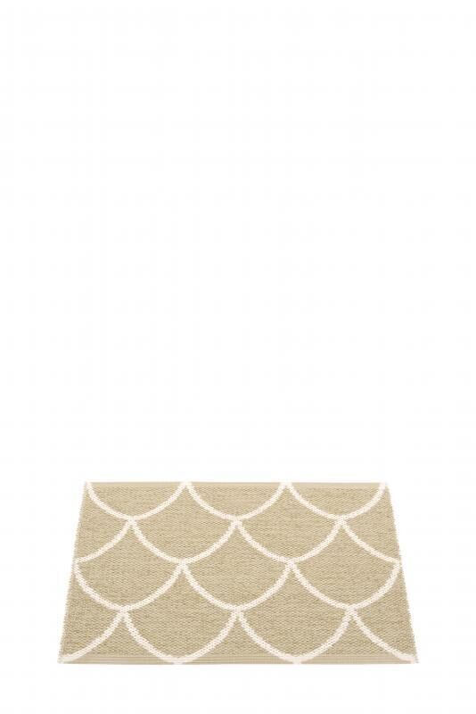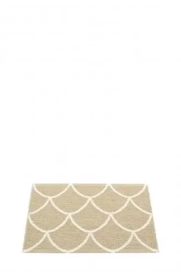 Dette tæppe fra Pappelina måler 70 x 50 cm, en størrelse der passer fint foran en dør, ved sengen eller i entréen. Den rektangulære form gør det nemt at placere, og skælmønstret giver en diskret visuel interesse uden at dominere rummet.