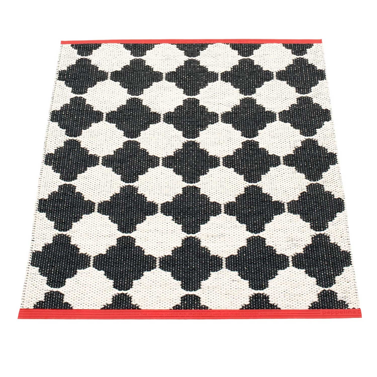 Dette tæppe fra Pappelina er fremstillet af holdbare materialer, der tåler både indendørs og udendørs brug. Materialet er nemt at rengøre, hvilket gør det praktisk til områder med høj trafik eller hvor der let opstår pletter og snavs.