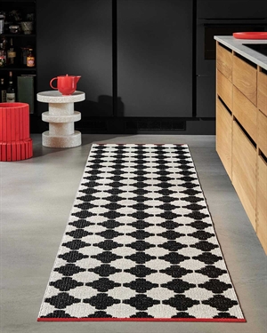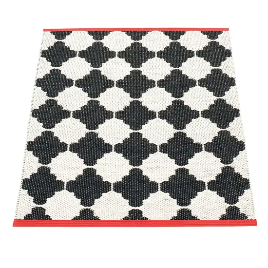 Med dimensionerne 70 x 90 cm fungerer tæppet som et accentstykke, der definerer et område uden at fylde for meget. Størrelsen gør det nemt at placere det foran en dør, under et lille bord eller på en altan. Den sorte farve skjuler slidmærker og passer ind i både moderne og klassiske indretninger.