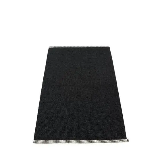Dette tæppe fra Pappelina bringer en moderne karakter til dit hjem med sin sorte farve og synlige tekstur. Den stribede kant i kontrastfarve tilføjer et unikt detalje, der gør tæppet til mere end blot en gulvløsning – det bliver et stilfuldt element i rummet.