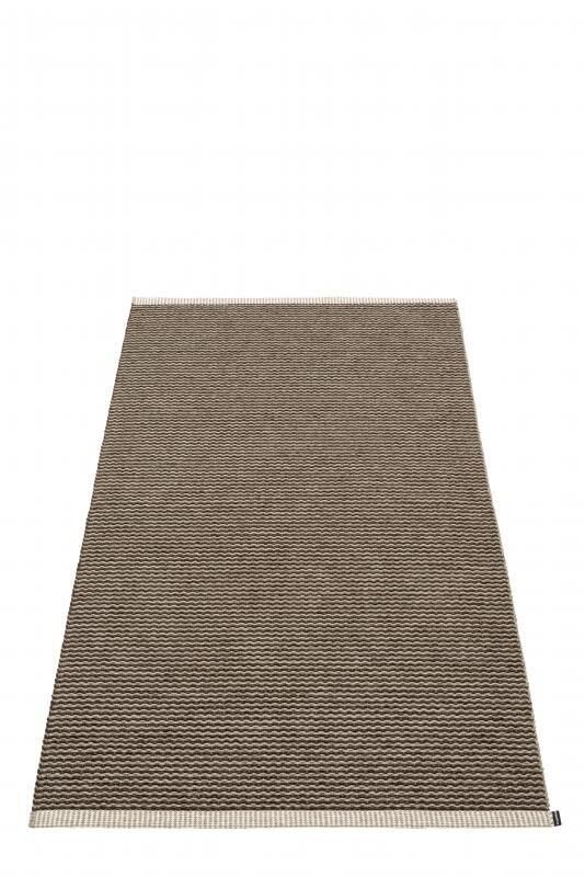 Dette tæppe fra Pappelina måler 85 x 160 cm og har en ensartet mørkebrun farve med et subtilt mønster. Dimensionerne gør det velegnet til gange, foran sofaer eller i mindre rum, hvor du ønsker at tilføje varme uden at overvælde rummet.