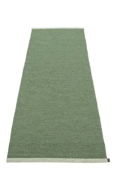 Dette tæppe fra Pappelina kombinerer en grøn oregano-farve med et tekstureret mønster, der giver rummet karakter. De lysere kanter skaber en subtil kontrast, som fremhæver tæppets form og tilføjer et raffineret detaljeniveau til designet.