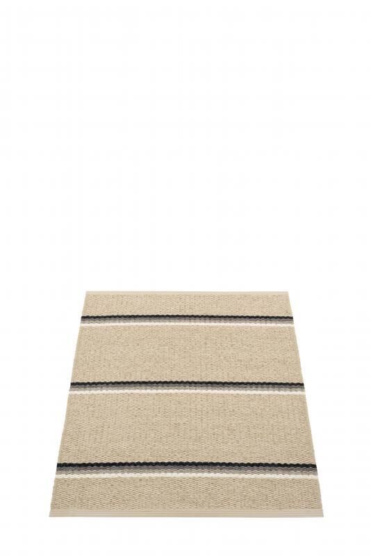 Dette tæppe fra Pappelina har en vævet struktur, der giver en holdbar konstruktion og en behagelig tekstur under fødderne. De vandrette striber i forskellige nuancer skaber visuel dybde og hjælper med at binde farverne i dit rum sammen. Tæppet måler præcist 70 x 90 cm.