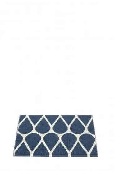 Denne måtte fra Pappelina giver dig to looks i ét produkt. Det vendbare design har en mørkeblå side med lyst geometrisk mønster og en lys side med mørkt mønster. Du kan skifte udtryk efter humør eller årstid uden at købe nyt.