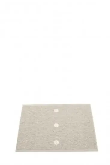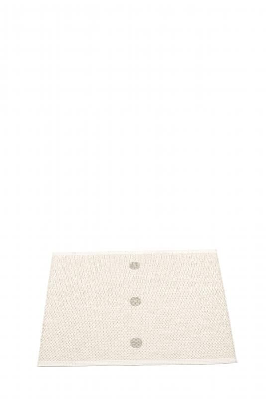 Denne måtte fra Pappelina måler 70 x 60 cm og har en rektangulær form med tre cirkulære mønstre placeret centralt. Den lyse, neutrale baggrundsfarve gør den nem at integrere i forskellige rum uden at dominere visuelt, hvilket giver dig fleksibilitet i din indretning.