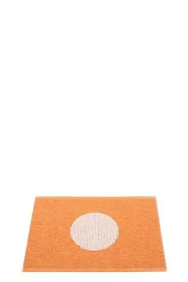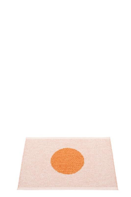 Denne måtte fra Pappelina har et centralt cirkelmotiv, der skaber et tydeligt fokuspunkt i rummet. Med mål på 70 x 50 cm passer den ind ved døre, i badeværelset eller som accent i mindre områder. Farverne pale orange og pearl pink giver en blød kontrast.