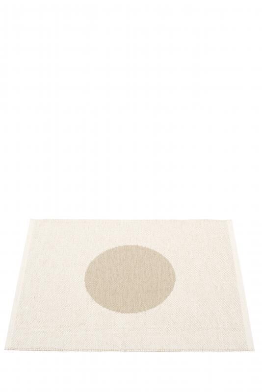 Dette tæppe fra Pappelina måler 70 x 90 cm og kommer i to farvevarianter: beige baggrund med hvid cirkel eller hvid baggrund med beige cirkel. Det geometriske design giver dig mulighed for at vælge den variant, der passer til dit eksisterende farveskema.