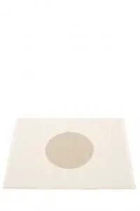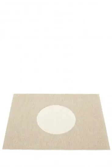 Hvis du søger et tæppe, der kan integreres i forskellige rum uden at dominere, giver de to farvevarianter dig fleksibilitet. Den beige baggrund med hvid cirkel fungerer i varmere farveskemaer, mens den hvide baggrund med beige cirkel passer til lysere omgivelser.