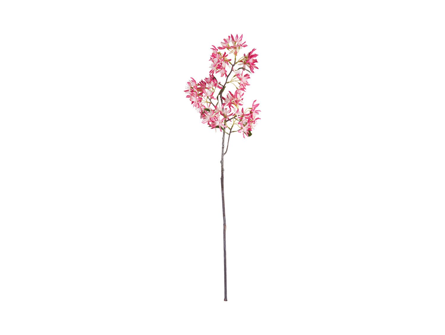 Denne kunstige blomst bringer et strejf af farve ind i dit hjem uden behov for pleje. Med lyserøde blomster i stof arrangeret i klynger langs stilken får du et fyldigt udtryk, der minder om naturens eget design.