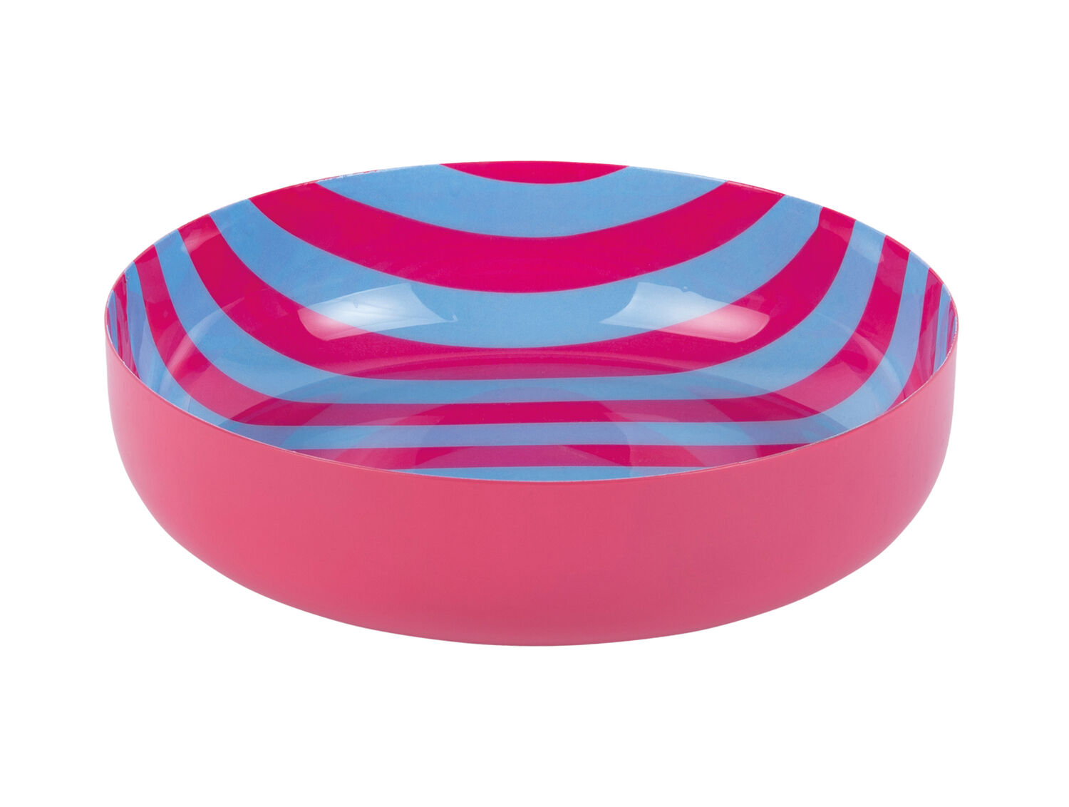 Denne skål fra Present Time tilføjer et levende farvestrejf til dit hjem med sin klare lyserøde yderside. Indersiden er dekoreret med lyserøde og bløde blå striber, der skaber et unikt visuelt udtryk. Skålen er lavet af jern, hvilket giver den en robust konstruktion og lang levetid.