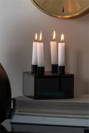 Present time - Candle holder Boxed square glass black