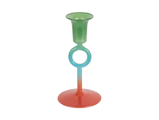 Lysestagen passer til kreative individer, der værdsætter dristige designvalg. Dimensionerne på 15 cm i højden og 7,5 cm i diameter gør den velegnet til både borde og hylder. Glassets naturlige egenskaber betyder, at den er nem at rengøre, og det flerfarvede design fungerer som et selvstændigt dekorationselement i moderne boligmiljøer.