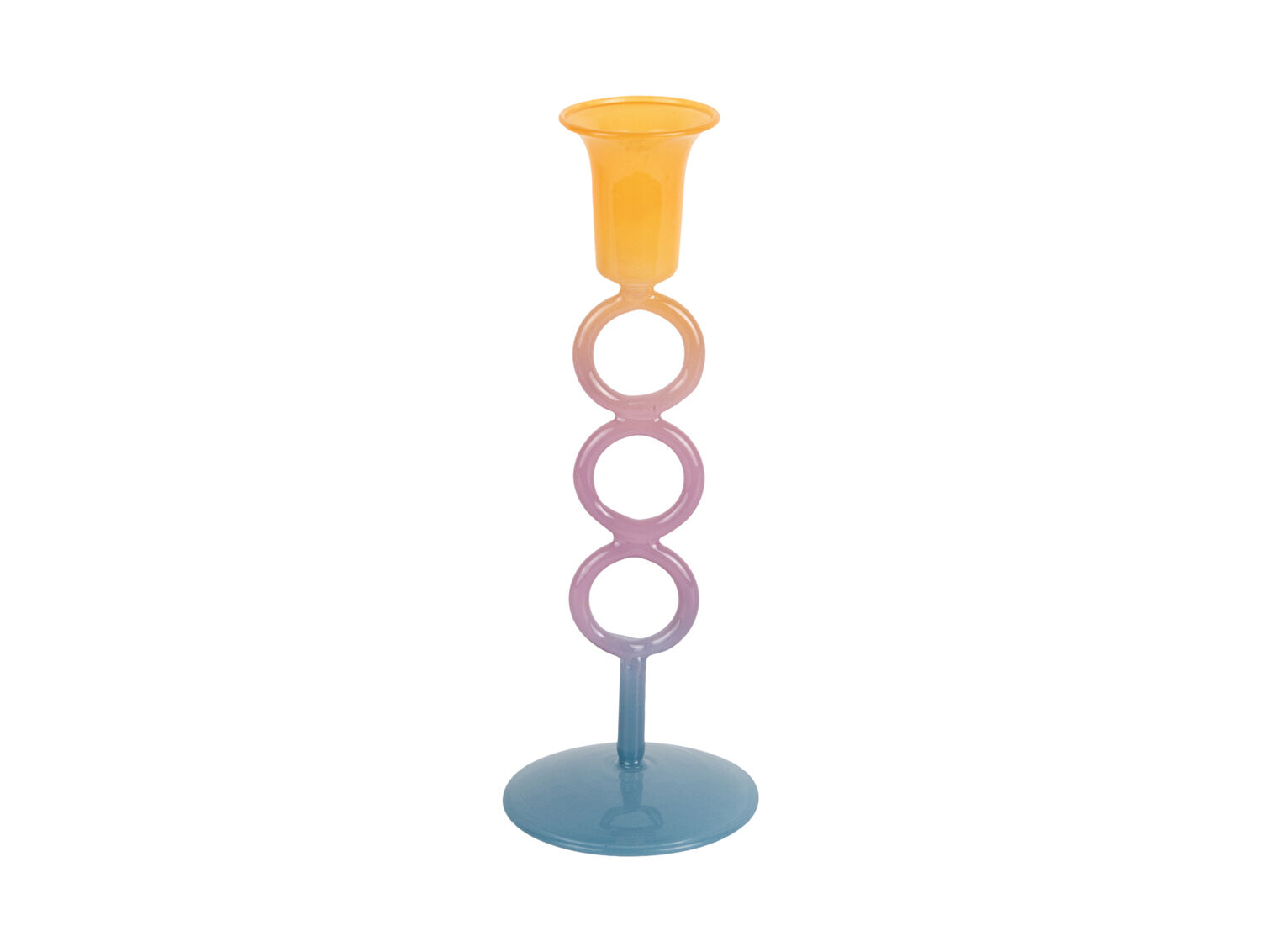 Denne lysestage fra Present Time er lavet af glas, hvilket giver dig et holdbart produkt, der er let at rengøre. Med sin multicolor-finish i gul, gradient-ringe og blå base får du et farverigt element til din boligindretning.