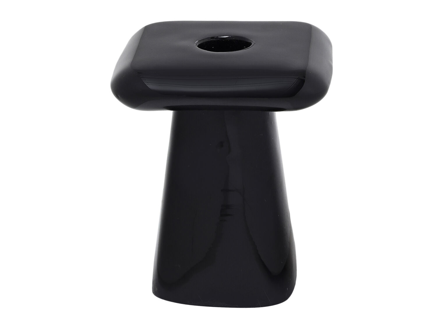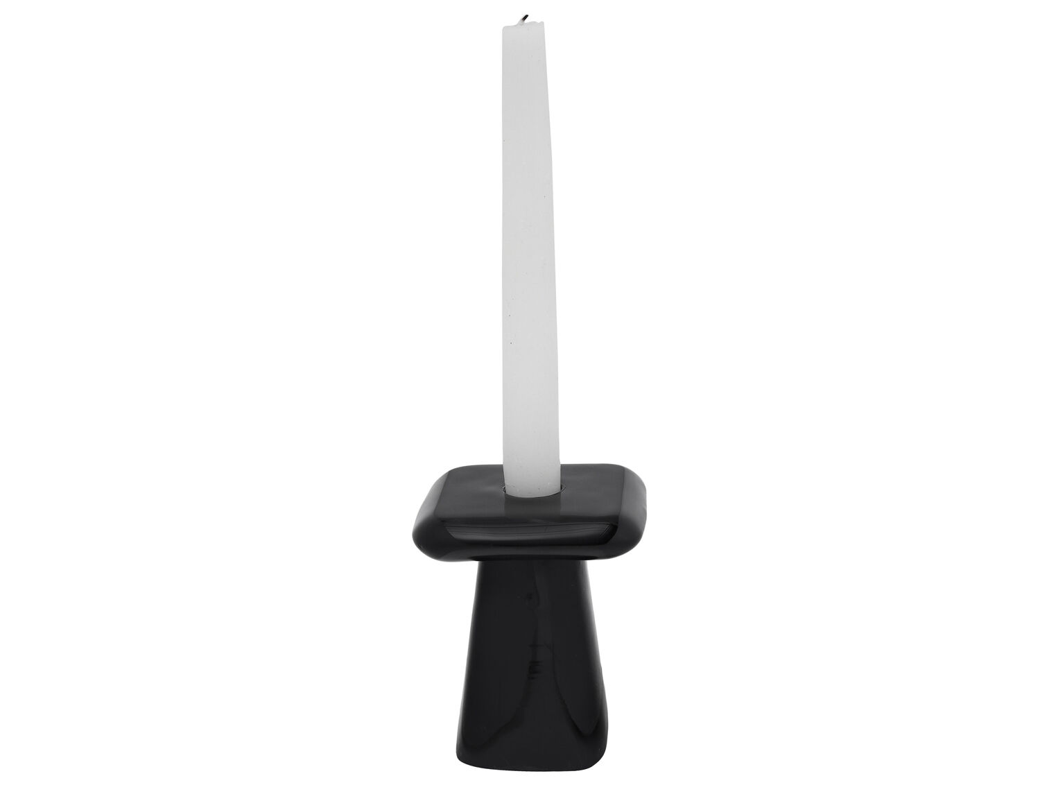 Denne lysestage fra Present Time er fremstillet i jern med en blank sort finish. Med en højde på 11,5 cm passer den ind i forskellige indretninger, fra vindueskarme til hylder. Det geometriske design med kvadratisk top og konisk base giver et moderne udtryk.