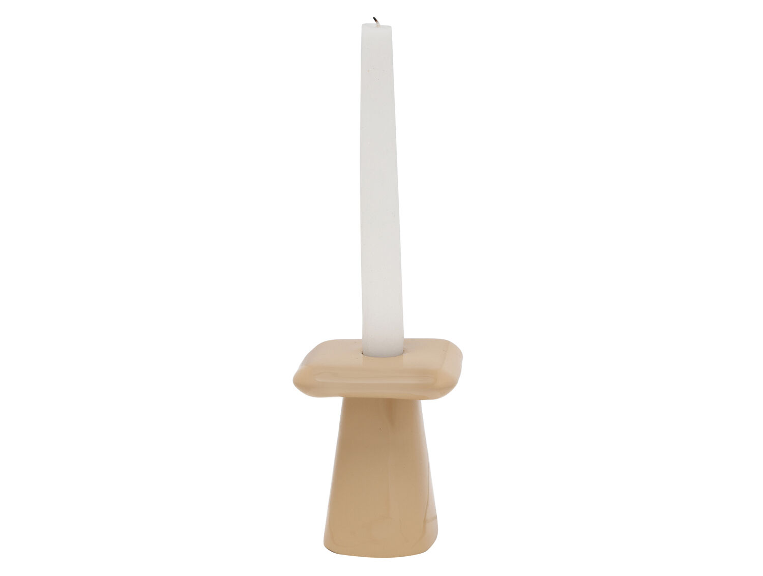 Jern er et robust materiale, der tåler daglig håndtering og giver lysestagen en stabil base. Den koniske form med flad top holder lyset sikkert på plads. Den bløde brune farve giver en varm fornemmelse, der fungerer både i moderne og mere traditionelle hjem.