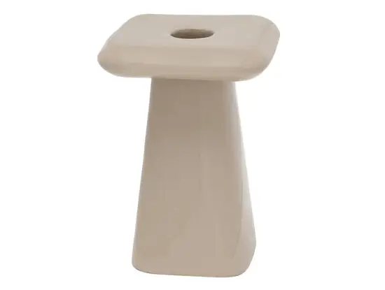 Med en højde på 13 cm fungerer lysestagen godt på både spiseborde, vindueskarme og hylder uden at dominere. Den varmgrå farve fungerer som en neutral base, der ikke kræver særlige farvevalg i resten af indretningen. Hullet i toppen passer til standardlys, så du ikke behøver at lede efter specielle størrelser.