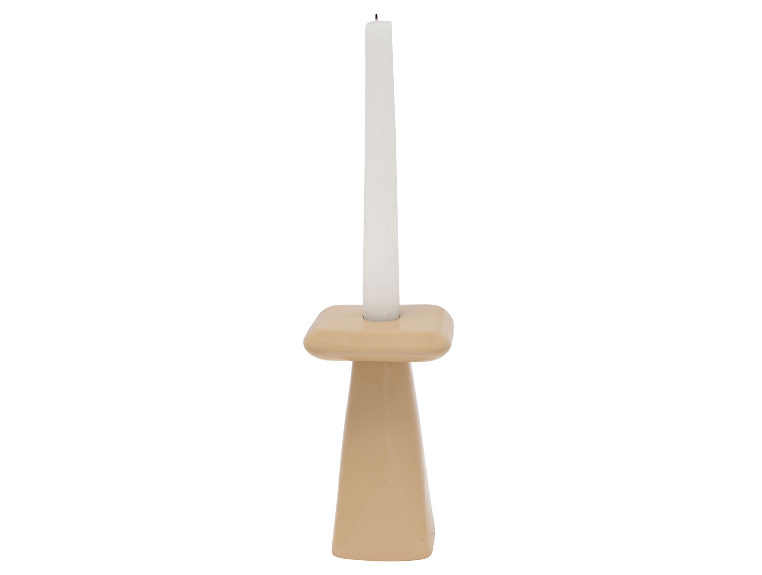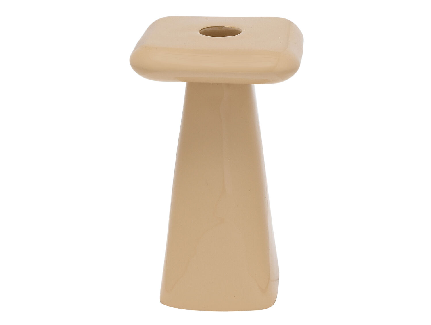 Lysestagen Roca er fremstillet af jern, hvilket giver dig et robust produkt med langvarig holdbarhed. Den bløde brune farve passer ind i forskellige indretningsstile, fra moderne til mere naturlige udtryk. Med sit geometriske design – bred top og smal base – tilføjer den et skulpturelt element til dit hjem.