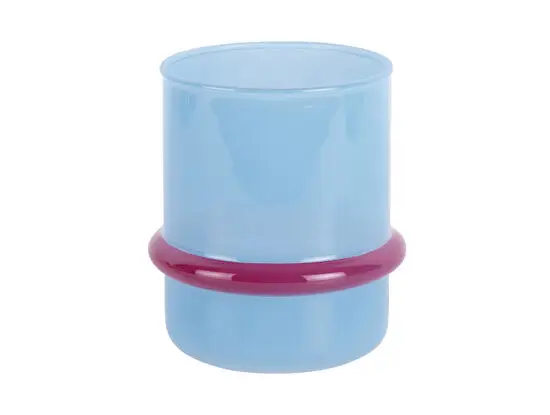 Denne lysestage fra Present Time bringer farve ind i dit hjem med en lys pink ring, der skærer gennem den bløde blå glasoverflade. Med en diameter på 10 cm og en højde på 12 cm passer den ind på hylder, borde og vindueskarme uden at fylde for meget.