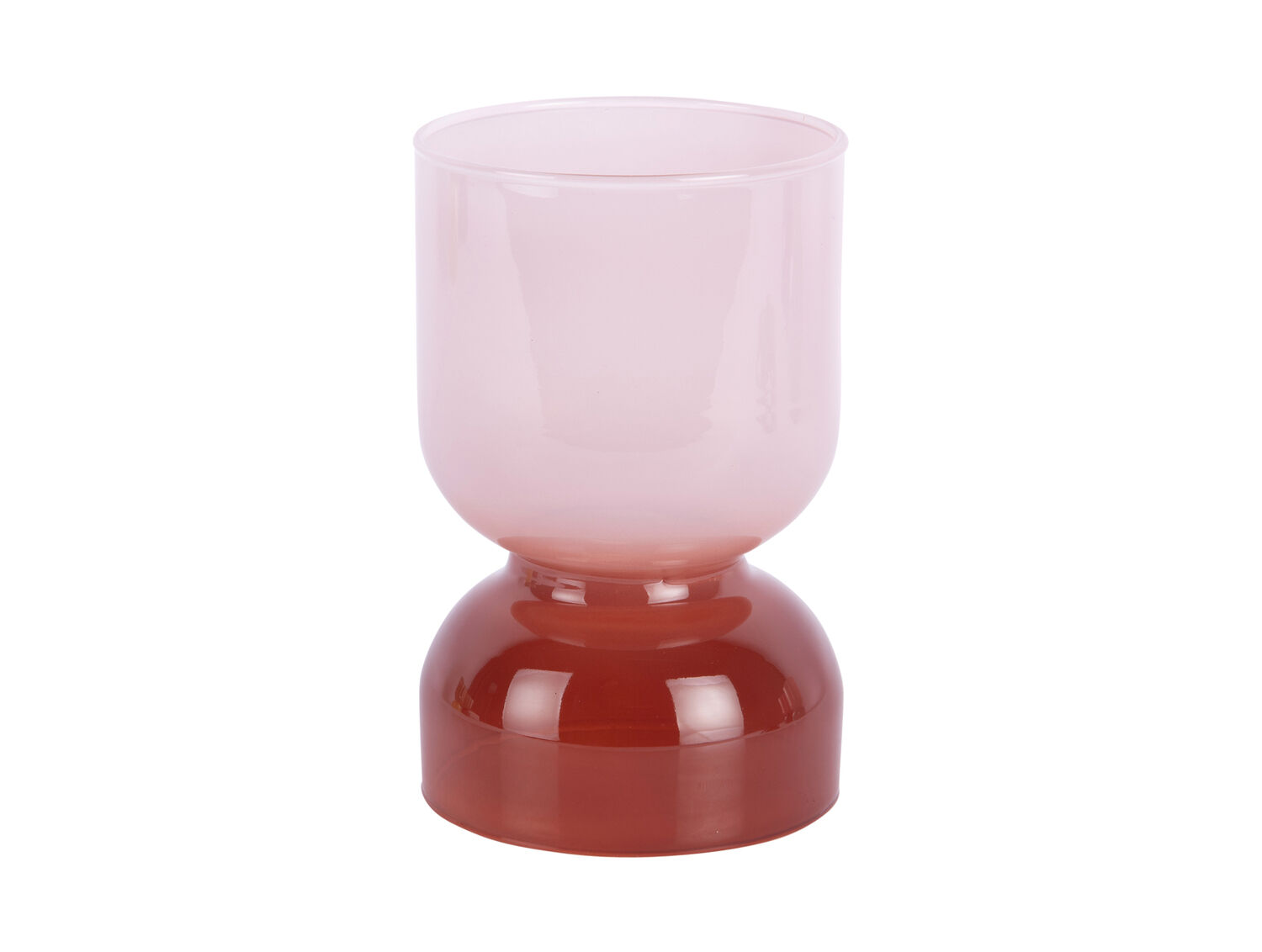 Denne lysestage fra Present Time kombinerer en blød pink top med en rød okkerbund i en jævn farveovergang uden skarpe linjer. Glasmaterialet giver lysestagen et tidløst udseende, som er nemt at rengøre og vedligeholde i dagligdagen.