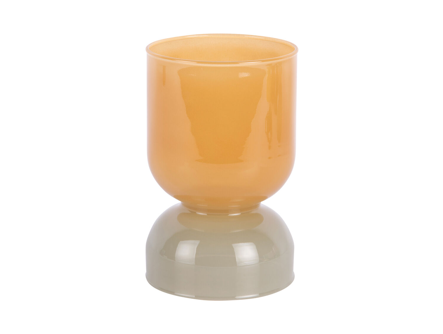 Denne lysestage kombinerer en okkergul top med en grålig jadebund i et tofarvet design, der tilføjer et farverigt touch til din indretning. Den er lavet i glas med en glat overflade, som gør den nem at rengøre og vedligeholde.