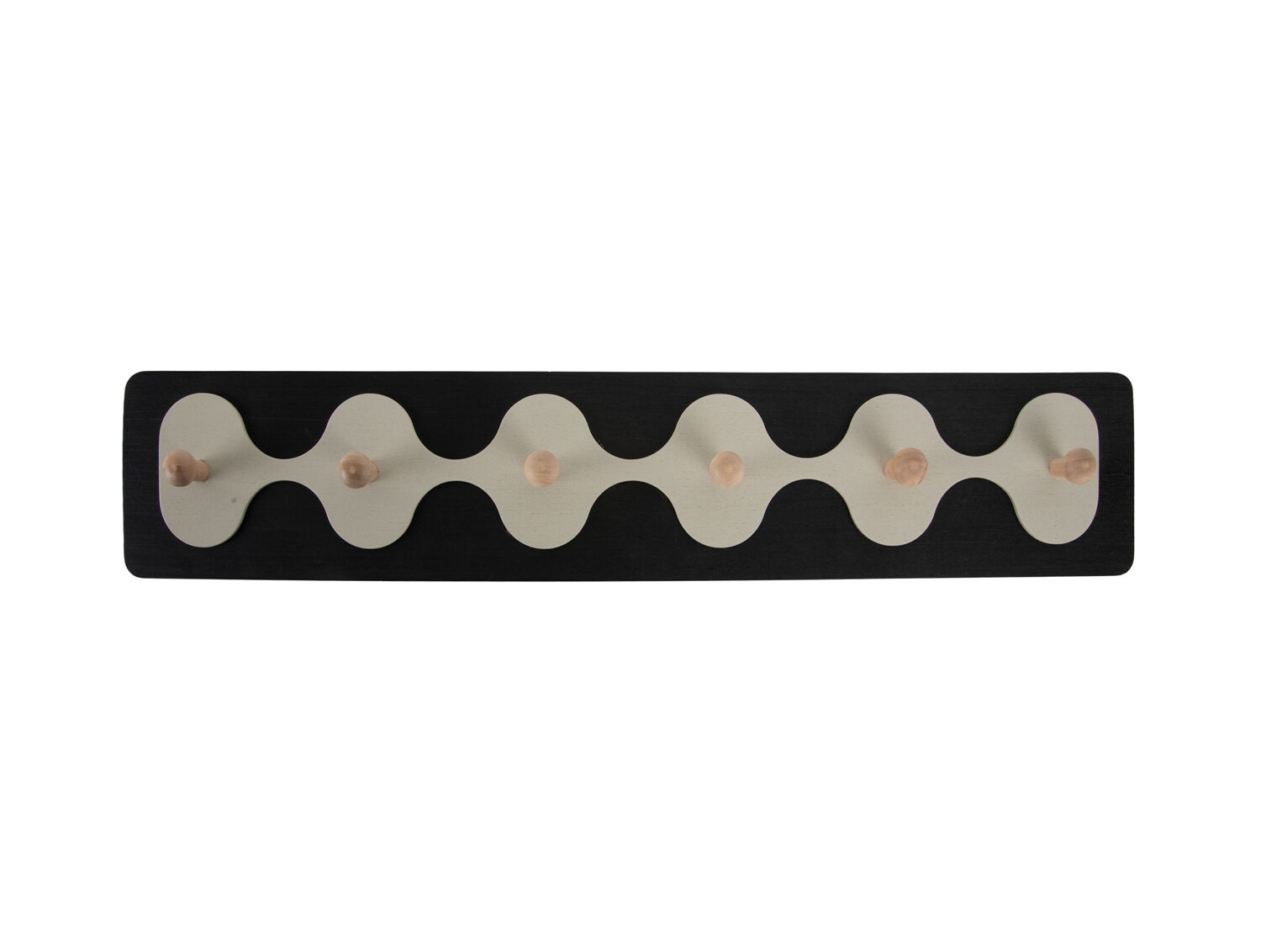 Med seks knager fordelt over 60 cm får du mulighed for at hænge jakker, tasker og accessories op på en organiseret måde. De jævnt fordelte knager sikrer, at dine ting ikke hænger sammen, og det bølgeformede design tilføjer et moderne udtryk til væggen.