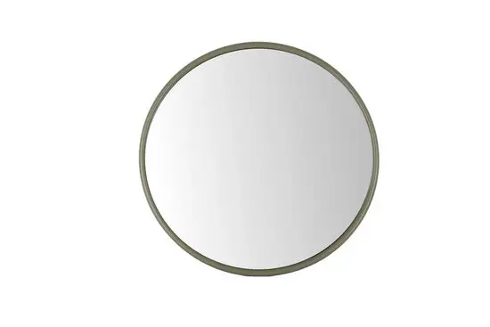 Jernkonstruktionen betyder, at rammen kan modstå stød og daglig håndtering uden at miste sin form. Materialet er valgt for sin styrke, så spejlet bevarer sit udseende år efter år. Den grønne farvetone på rammen komplementerer både lyse og mørke vægge, hvilket gør det nemt at integrere i forskellige indretningsstile.