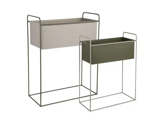 Hvis du har investeret i planter, men mangler en måde at vise dem frem på, der matcher dit moderne hjem, løser dette sæt problemet. Jernkonstruktionen holder vægten af jord og planter uden at bøje sig, og den grågrønne farve integrerer sig naturligt i minimalistiske indretninger.