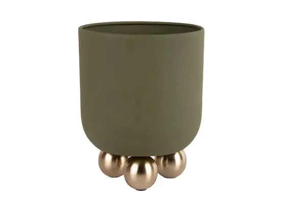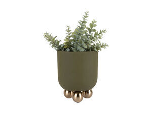 Med en diameter på 18,5 cm og en højde på 23 cm kan du placere potten på små hylder, vindueskarme eller sideborde uden at den fylder for meget. De fire guldfarvede kugleben løfter potten fra underlaget, hvilket giver bedre luftcirkulation og beskytter dine møbler mod fugt.
