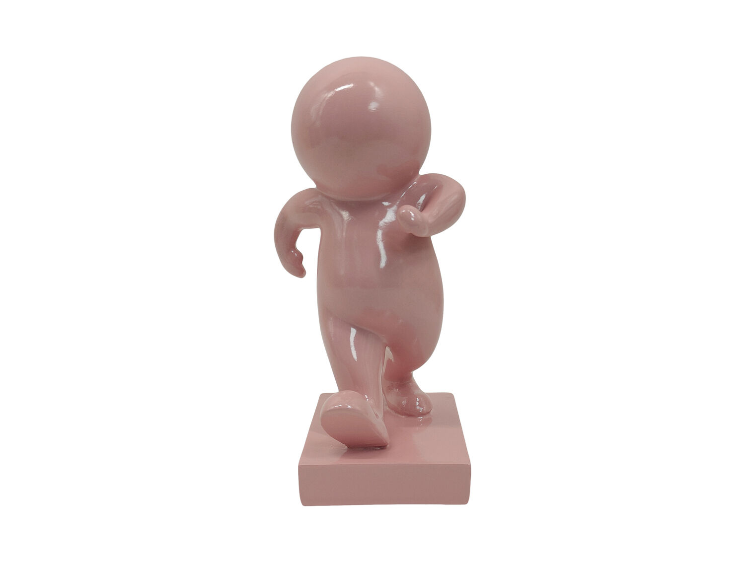Denne statue i blød pink tilføjer et stilfuldt element til din indretning. Den gående figur har en glat, blank overflade, der fanger lyset. Farven kan kombineres med forskellige stilarter, hvilket gør den til et alsidigt valg for dit hjem.