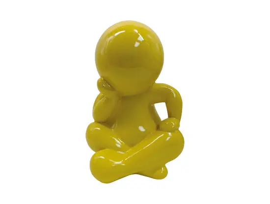 Denne citrongule statue i siddeposition tilføjer et lyst og moderne udtryk til din indretning. Den er fremstillet af polyresin, et holdbart materiale, der sikrer langvarig brug både indendørs og udendørs. Den glatte, afrundede form uden ansigtstræk giver et minimalistisk look.
