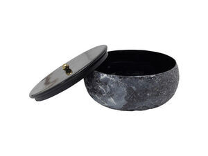 Boksen passer ind i både stuen, soveværelset og badeværelset. Den runde form med marmorlignende mønster i sorte og grå nuancer giver et diskret udtryk. Det glatte sorte låg afslører en glat inderside, så intet hænger fast. Med en dybde på 7 cm rummer den mere, end størrelsen antyder.