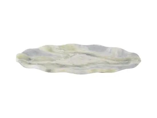 Present time - Tray Waved oval large marble himalayan green