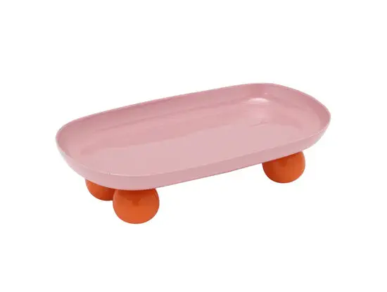 Present time - Tray Double Funky oval soft pink w. bright orange
