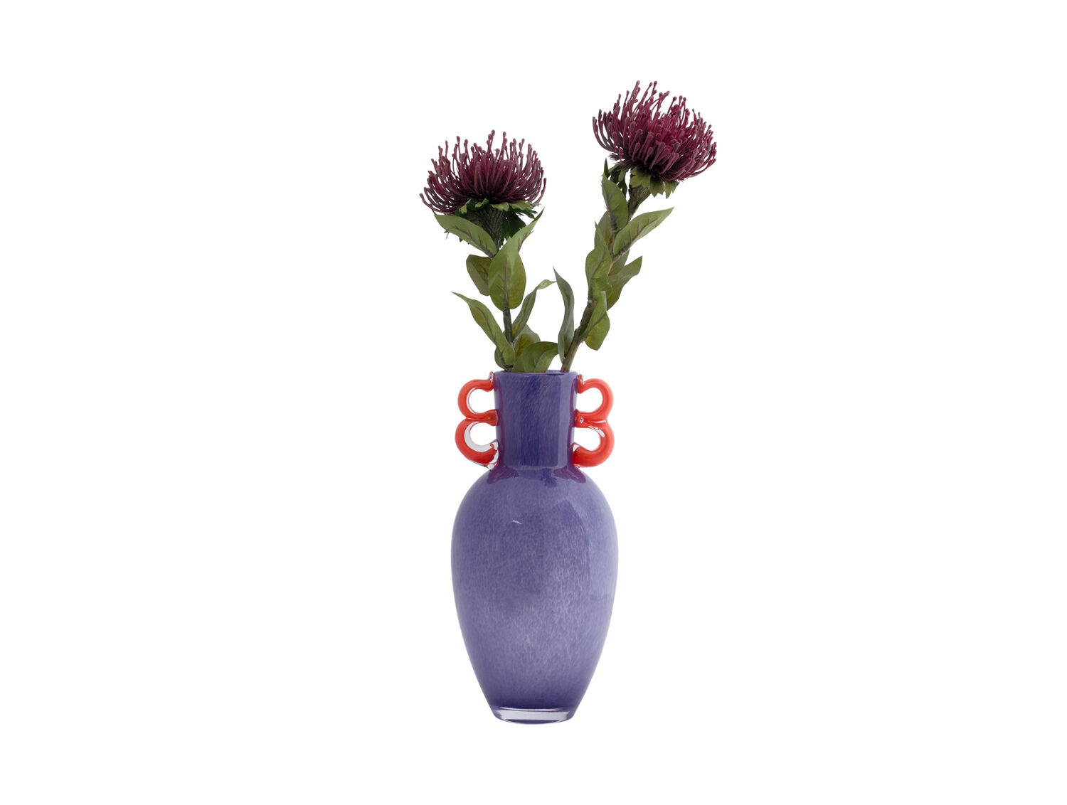 Present time - Vase Fiesta glass large bright purple, orange handles
