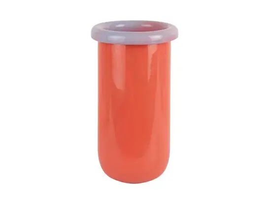 Hvis du leder efter en specifik farve til din indretning, giver den lyse orange krop med den bløde lilla kant dig en klar æstetisk profil. Farvekombinationen gør det nemmere at matche vasen med moderne interiør, hvor du ønsker et iøjnefaldende element, uden at du skal gætte på, om farven passer.