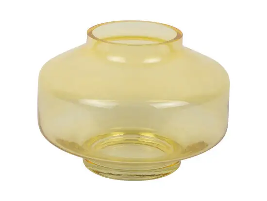 Denne vase i mango-gul glas tilføjer et friskt farveaccent til dit hjem. Glasmaterialet giver en gennemsigtig finish, der fanger lyset og fremhæver den livlige gule tone. Med en bred, afrundet form og en smal åbning får du en vase, der fungerer både med og uden blomster.