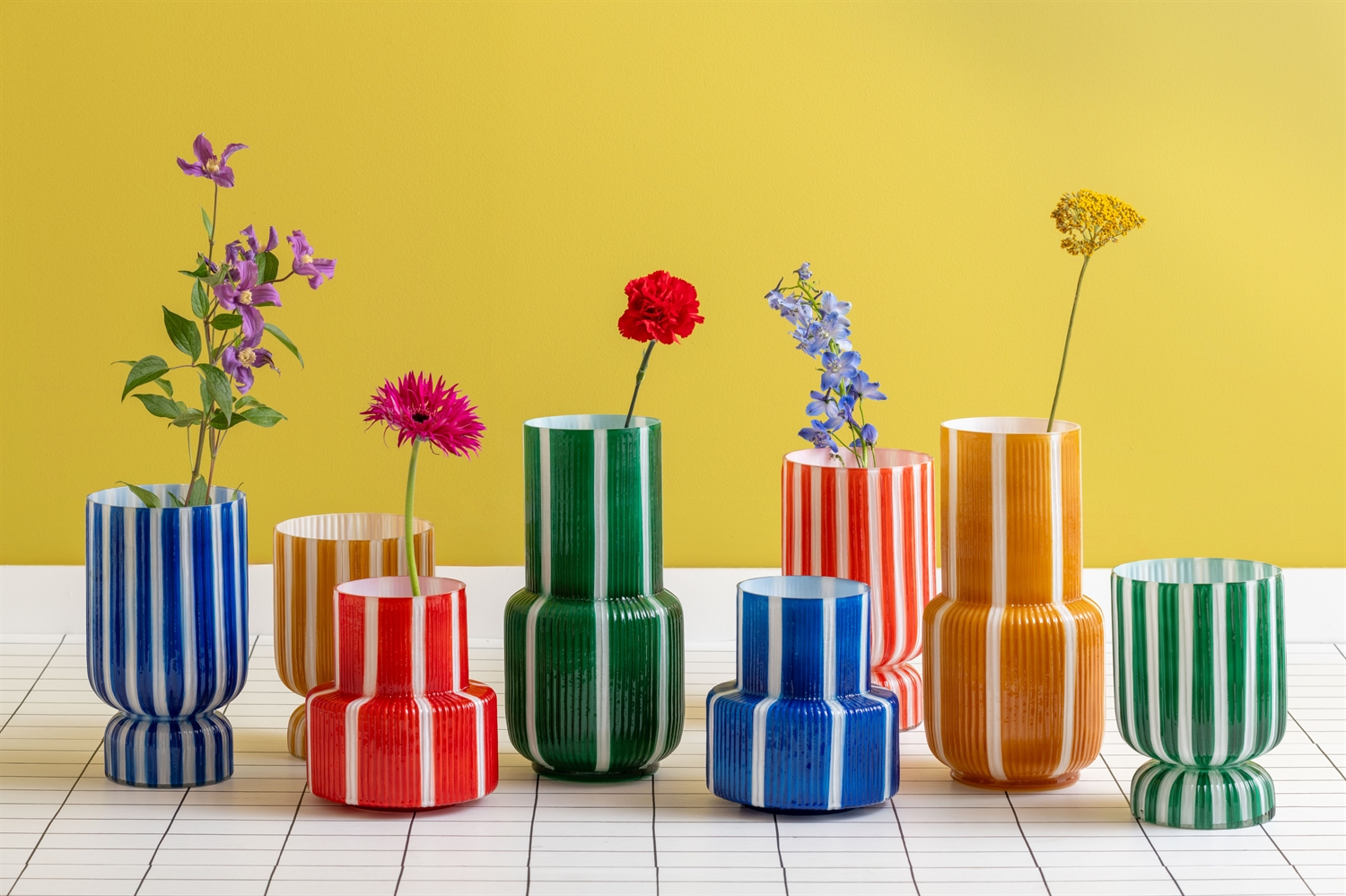 Present time - Vase Rayado Retro bred lys skarlagenrød