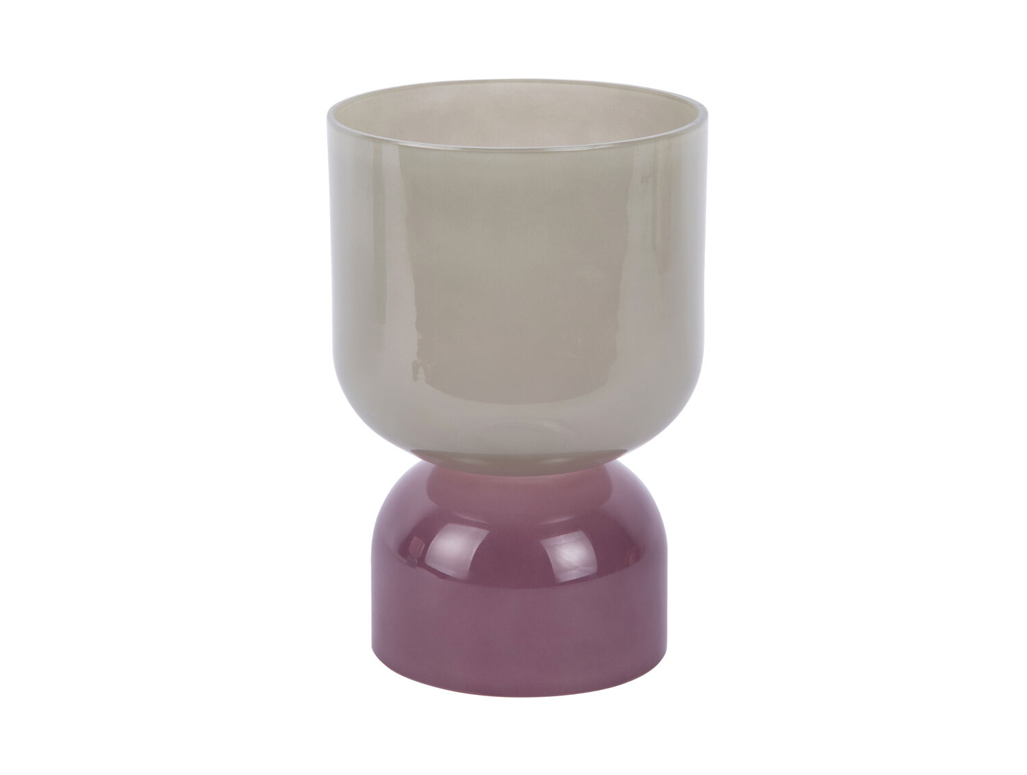 Denne vase bringer farve og kunstnerisk udtryk til dit hjem med sit tofarvede design. Den grågrønne top møder en lys lilla bund, hvilket skaber et moderne og iøjnefaldende look. Den er lavet af glas med en glat, blank overflade, der er nem at rengøre og vedligeholde.