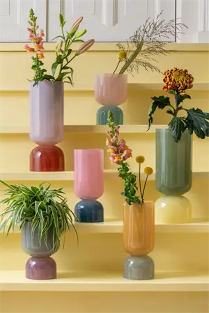 Denne glasvase kombinerer blød lyserød og rød okker i et tofarvet design, der passer ind i både moderne og klassiske indretningsstile. Med en højde på 37 cm fungerer den som et synligt element i dit rum, der tiltrækker opmærksomhed uden at overvælde.