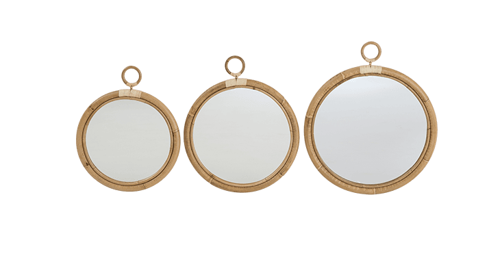 Naturlig Ella Spejl fra Sika Design. Ella Spejl er lavet af rattan som er et naturprodukt, der gør regnskovene bevaringsværdige og omdanner CO2 til rent luft. Så du kan med god samvittighed købe spejlet. Spejlet findes i small, medium og large.