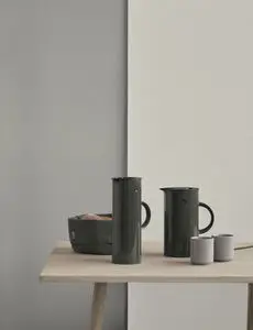 EM77 termokanden, designet af Erik Magnussen og produceret i Danmark siden 1977, er med sin unikke vippeprop et designikon, kendt og elsket over hele verden. Kanden på 1 l. kan anvendes til kaffe og te og den isolerende glasindsats sikrer, at drikken holder sig varm i mange timer - eller kold, hvis kanden bruges til fx iste. Udover vippeproppen medfølger også et picnic skruelåg, så kanden let kan transporteres med indhold.