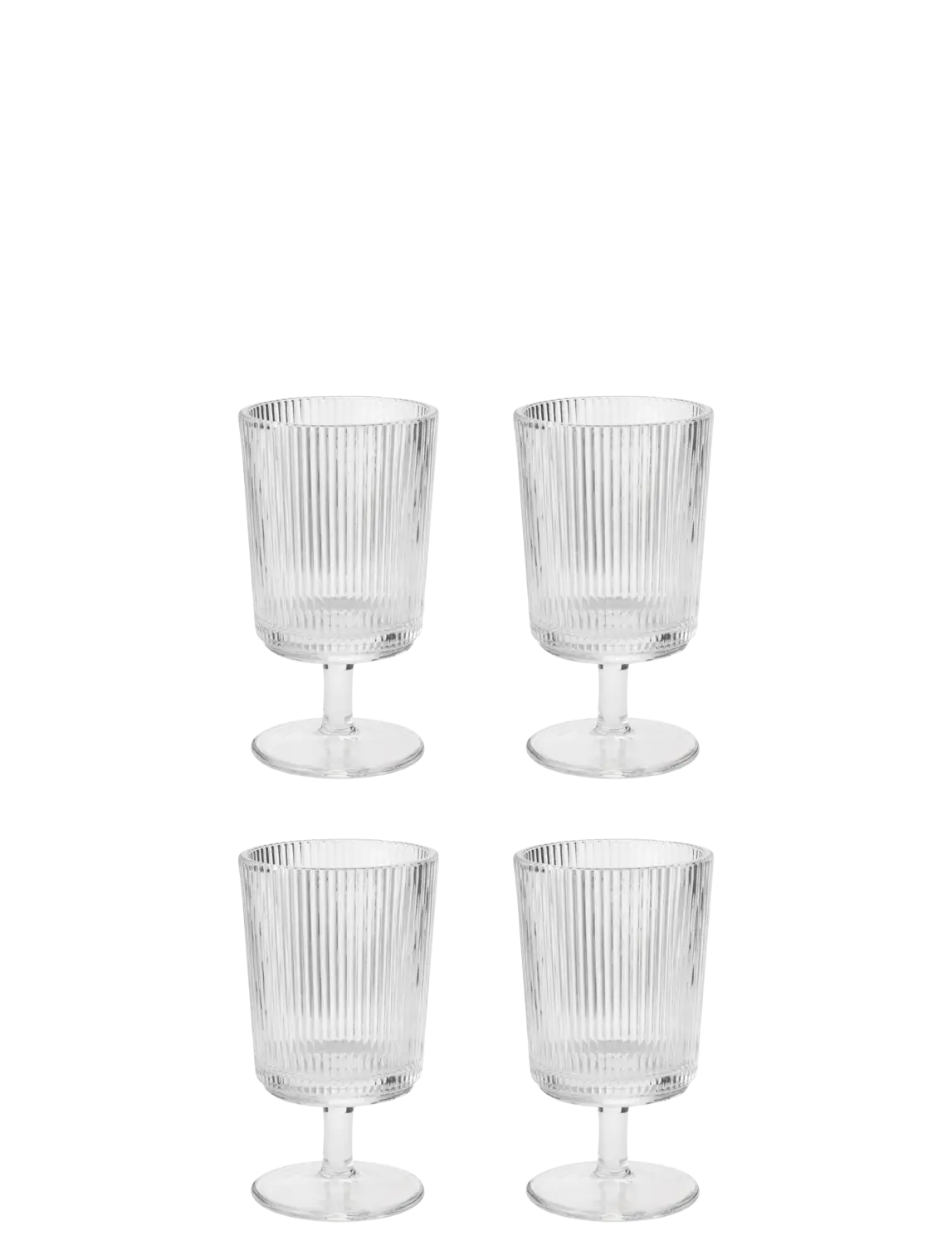 Nyd din vin i Steltons elegante Pilastro-vinglas, der emmer af charme og tidløs elegance. Inspireret af 1920'ernes art deco har glasset en raffineret rillet overflade og står smukt på sin lille fod. Glasset rummer 18 cl og tåler opvaskemaskine, hvilket gør det både stilfuldt og praktisk til enhver anledning.