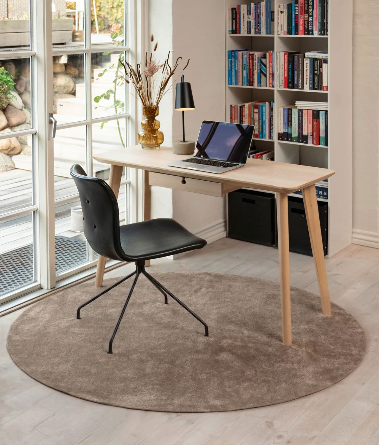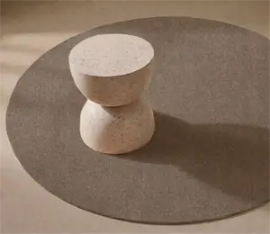 Tæppet fås i flere størrelser og varianter, så du kan vælge den størrelse, der passer til dit rum. Denne variant med 200 cm i diameter fungerer godt under et spisebord eller som et definerende element i stuen. Sandfarven passer ind i de fleste farveskemaer.