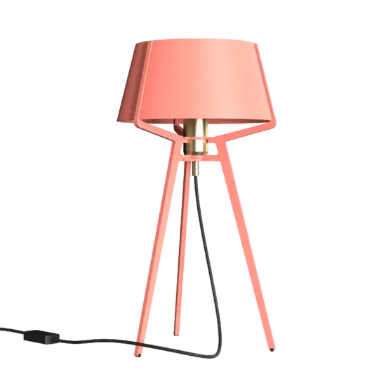 Tonone Bella lever virkelig op til sit navn: hun er en sand bella. Med de tre ben, en helt lukket skærm og brugen af ​​kun én skrue har denne bordlampe et funktionelt design. Valget af pulverlakeret stål gør Bella stærk, både i udseende og konstruktion. Designets styrke ligger dog ikke kun i det, man kan se, men også i det, man ikke ser. Bellas tre ben fortsætter for eksempel problemfrit mod skærmen, hvor de danner ribberne. Mellem disse ribber finder du en slids, hvor du kan fastspænde de løse plader. Armaturet er den eneste del, der er fastgjort med en skrue, som er diskret skjult under et låg. Som bordlampe fungerer Bella godt i næsten ethvert interiør: som et moderne touch i et klassisk hjem, som et minimalistisk element i en skandinavisk stil eller som en farverig tilføjelse til et industrielt miljø. Tonone Bella fås i 11 farver: Ice Blue (lyseblå), Smokey Black (sort), Flux Green (grøn), Pure White (hvid), Ash Gray (lysegrå), Midnight Gray (mørkegrå), Lightning White (cremehvid), Striking Orange (orange), Thunder Blue (blå), Daybreak Rose (pink) og Sunny Yellow (gul). For at tilpasse designet yderligere er der et andet valg at træffe: farven på armaturet. Bella-lampens armatur fås i messing eller sort. Hvor sort er den klassiske og tidløse mulighed, er messing mere dristig og dristig. Uanset hvilken farve du vælger, kan begge muligheder kombineres lige så nemt.