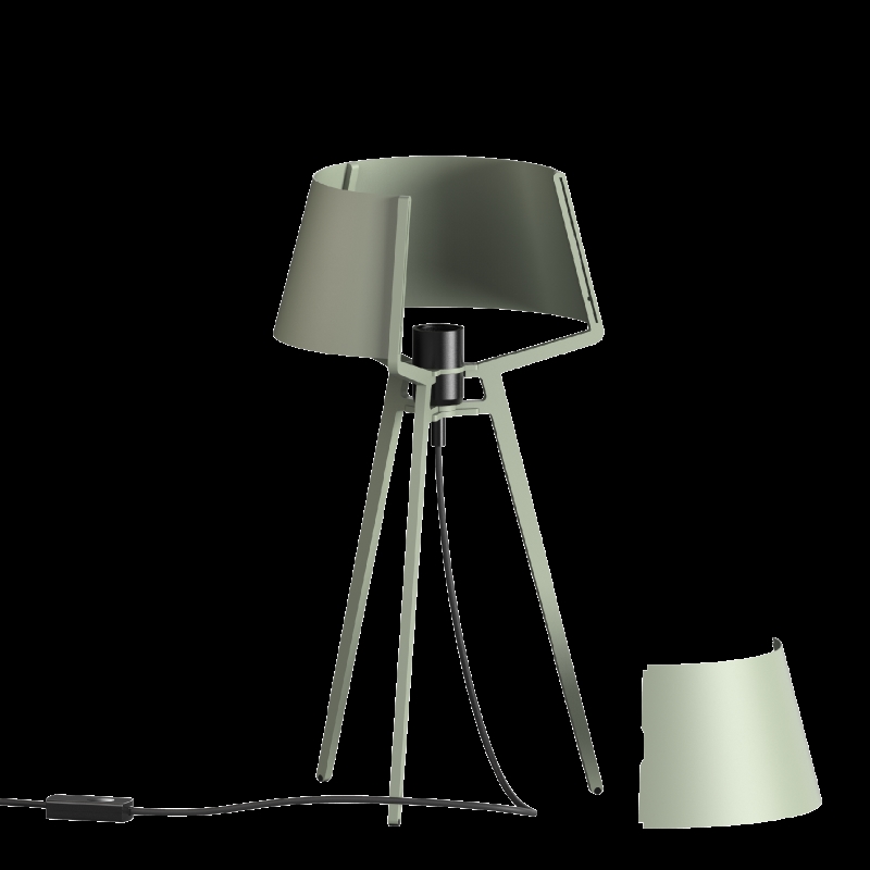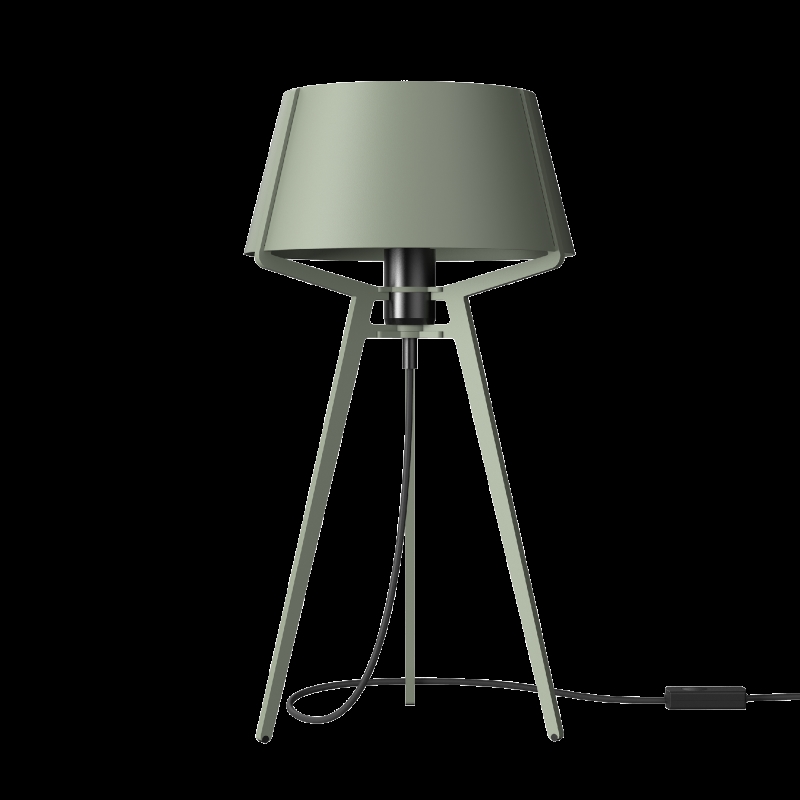 Bella er en bordlampe med et funktionelt design, hvor tre ben danner skulpturelle ribber, der fortsætter op mod den lukkede skærm. Lampen er lavet af pulverlakeret stål, hvilket giver styrke og holdbarhed. Den fluxgrønne og sorte farvekombination passer ind i moderne kontorer og hjem.