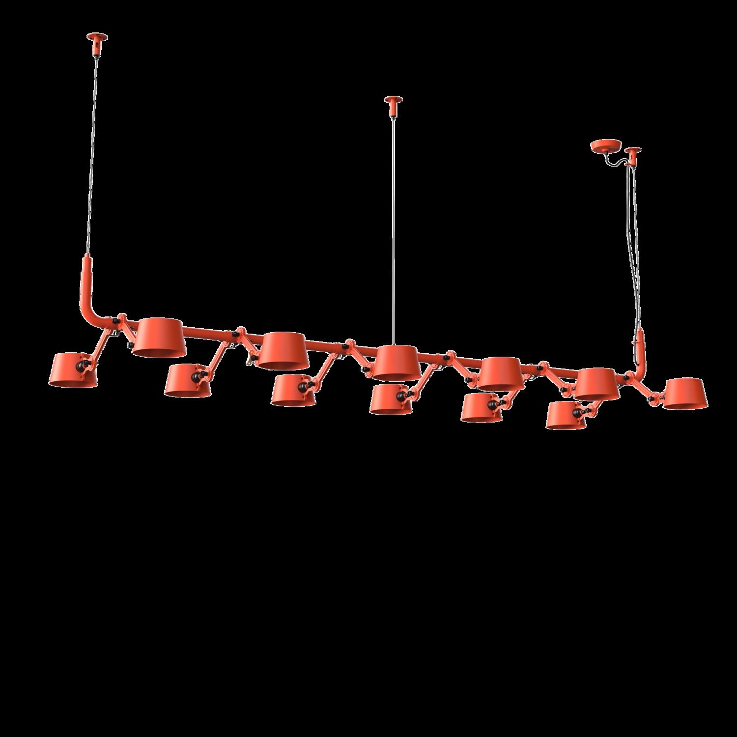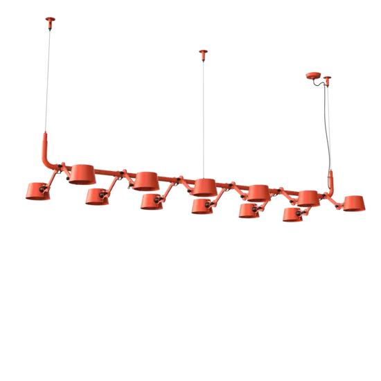 Tonone Bolt 12-pak pendel er et design af Anton de Groof. Den robuste industrielle lampeserie BOLT er genkendelig ved funktionalitet i form, rene linjer og vingemøtrikkens ikoniske hovedrolle. Bolt-serien fås i 29 modeller. 12-pak pendelen er kendetegnet ved en ramme med 12 justerbare pulverlakerede stålarme og pulverlakerede aluminiumsskærme. De åbne skærme sikrer en flot lysfordeling. Loftslampen kan justeres i forskellige positioner med vingemøtrikken. Den massive messingvingemøtrik er inkluderet for at justere hængslerne efter ønske. Udover at være et funktionelt hjælpemiddel er vingemøtrikken integreret i lampens design og er et karakteristisk visuelt element ved lampen. Tonone Bolt-serien fås i 11 farver: Smokey Black, Flux Green, Pure White, Ash Grey, Midnight Grey, Lightning White, Striking Orange, Thunder Blue, Daybreak Rose, Sunny Yellow og Ice Blue. Bolt Pack-pendlen fås også i en 6-, 8- eller 10-pak.