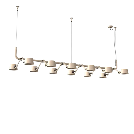 Tonone Bolt 12-pak pendel er et design af Anton de Groof. Den robuste industrielle lampeserie BOLT er genkendelig ved funktionalitet i form, rene linjer og vingemøtrikkens ikoniske hovedrolle. Bolt-serien fås i 29 modeller. 12-pak pendelen er kendetegnet ved en ramme med 12 justerbare pulverlakerede stålarme og pulverlakerede aluminiumsskærme. De åbne skærme sikrer en flot lysfordeling. Loftslampen kan justeres i forskellige positioner med vingemøtrikken. Den massive messingvingemøtrik er inkluderet for at justere hængslerne efter ønske. Udover at være et funktionelt hjælpemiddel er vingemøtrikken integreret i lampens design og er et karakteristisk visuelt element ved lampen. Tonone Bolt-serien fås i 11 farver: Smokey Black, Flux Green, Pure White, Ash Grey, Midnight Grey, Lightning White, Striking Orange, Thunder Blue, Daybreak Rose, Sunny Yellow og Ice Blue. Bolt Pack-pendlen fås også i en 6-, 8- eller 10-pak.